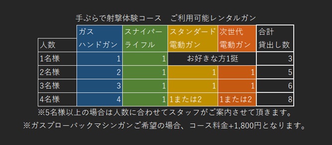 ・レンタルガンの操作方法や撃ち方など、スタッフのレクチャーサービス付きなので